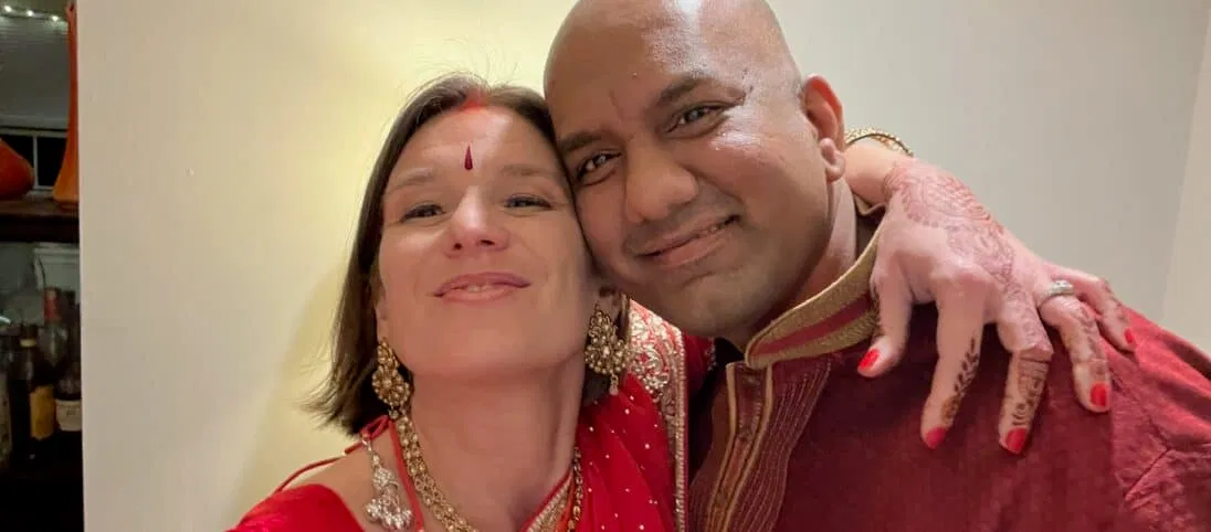 Shekar y yo después de la recepción de nuestra boda en enero de 2023.